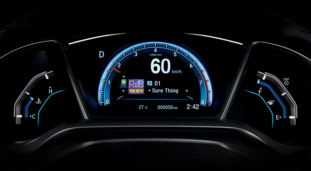 Much like the exterior, the Civic’s cabin also receives a total overhaul, starting with a dashboard that appears to be influenced by the smaller Jazz and City. The driver-focused two-tier layout is also gone here, replaced with a single instrument binnacle and an upright centre stack that is no longer angled towards the driver.